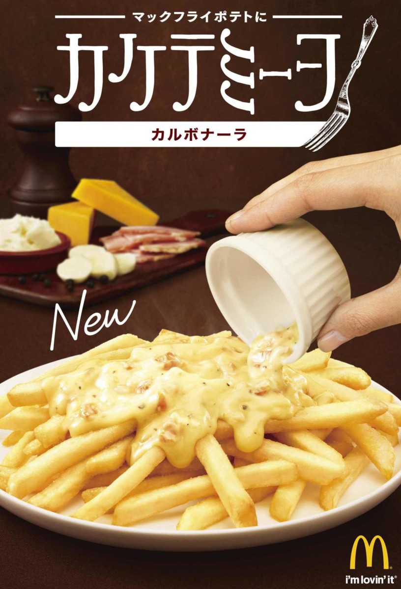 マクドナルドの人気メニュー「マックフライポテト」にかけていただく、あったかカルボナーラソース「カケテミーヨ カルボナーラ」が登場!