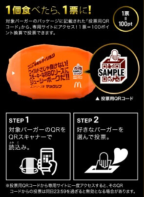 対象バーガーのパッケージに記載された「投票用QRコード」から専用サイトにアクセスすると、好きなバーガーに投票できます。