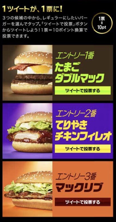 新たなレギュラーバーガーを3つの候補バーガーから投票で決定するマクドナルド。