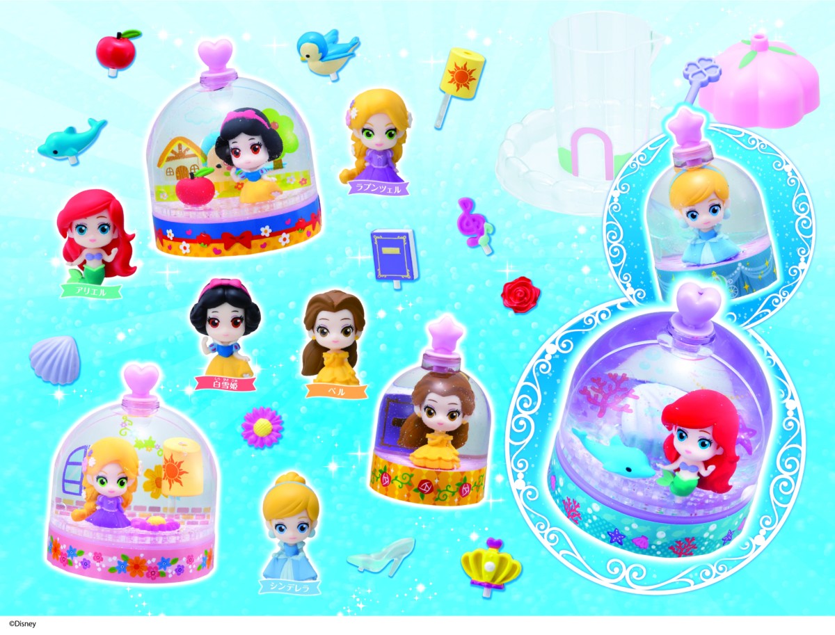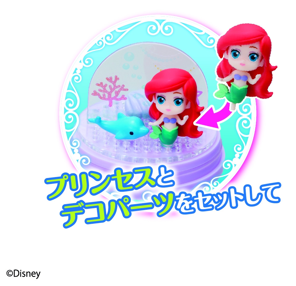 アリエル、ラプンツェル、ベル、シンデレラ、白雪姫など5人のディズニープリンセスのフィギュア入りのアクアドームが自分でつくれるおもちゃです☆
