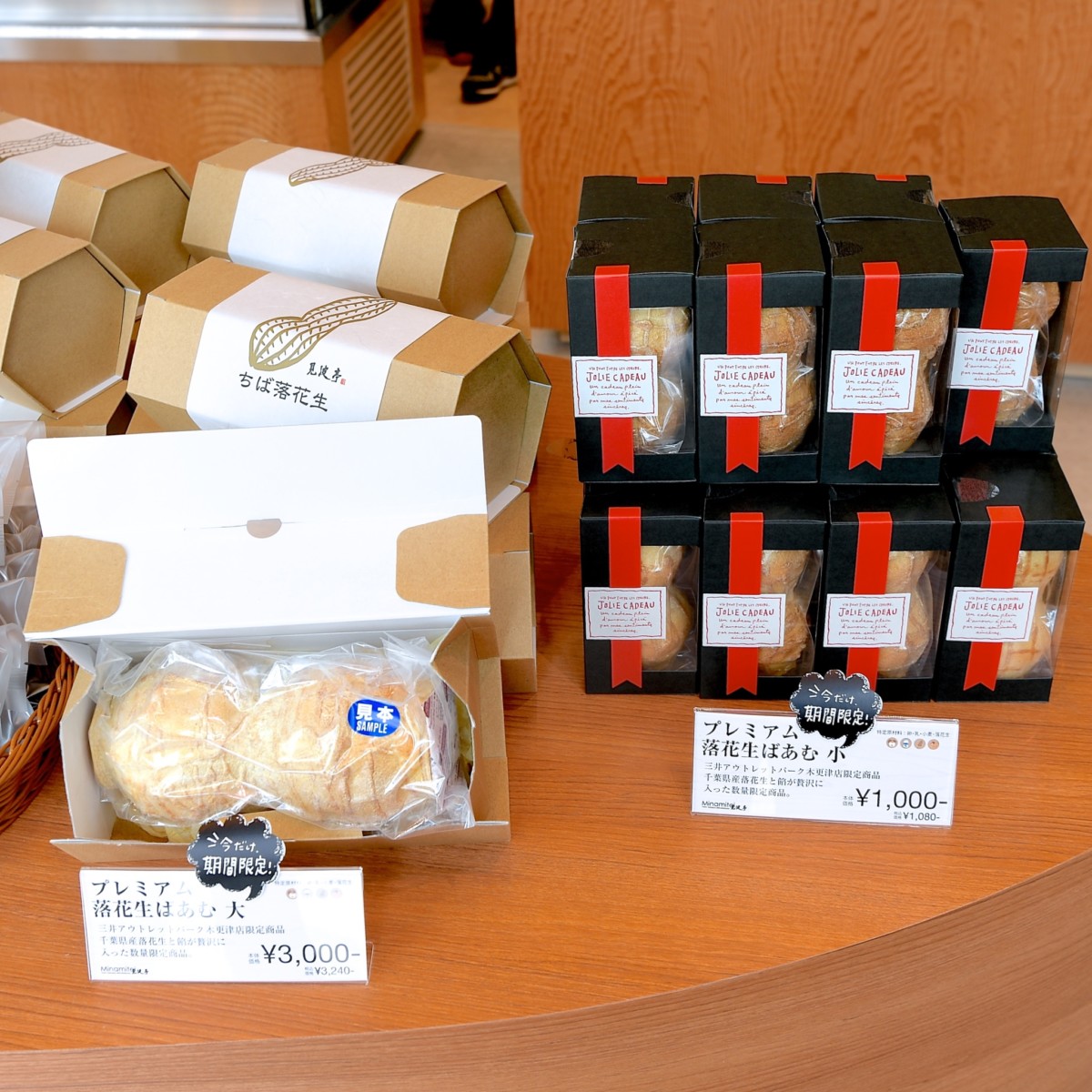 三井アウトレットパーク木更津限定のプレミアム落花生ばあむなどお土産にしたいスウィーツも販売されているので、お買い物のひとやすみにあわせてぜひお買い物を楽しんでくださいね☆
