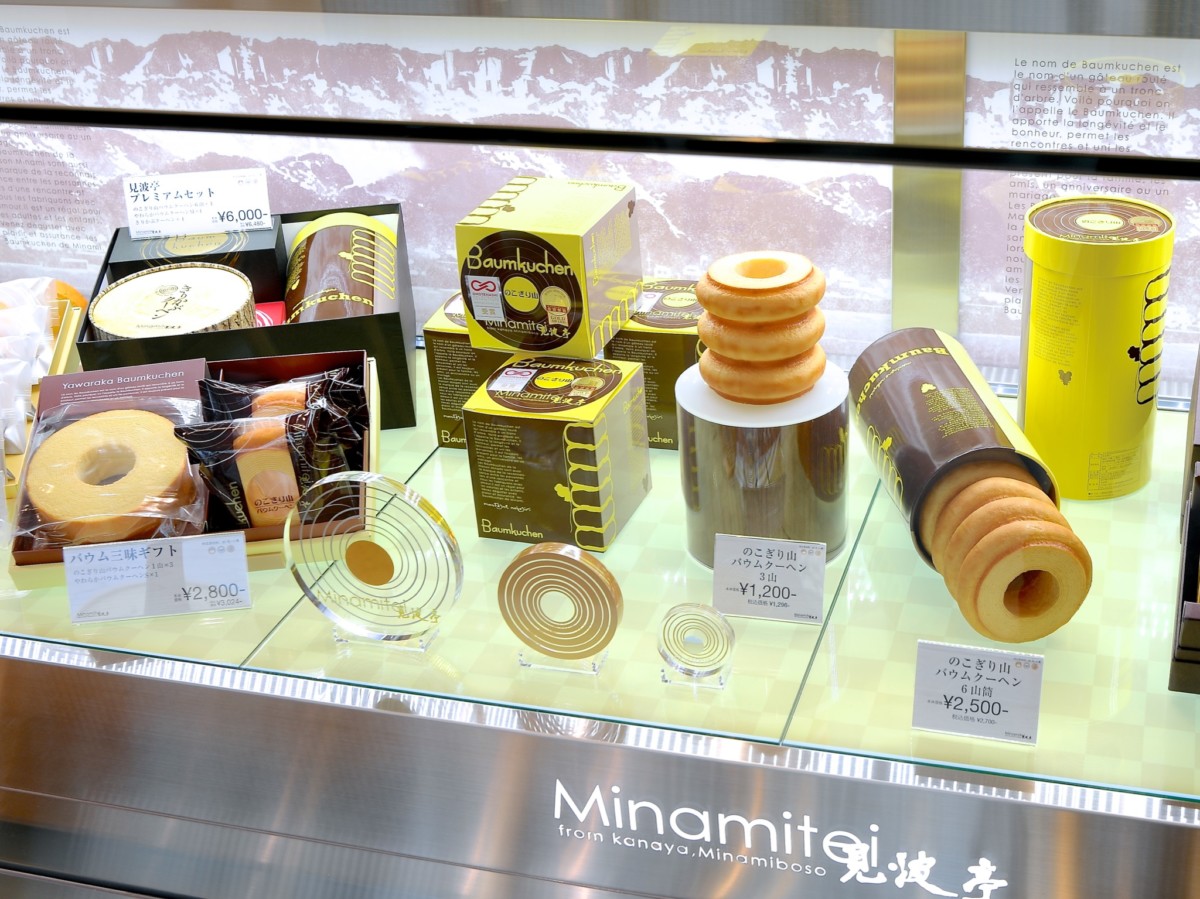 見波亭 三井アウトレットパーク木更津店の一番のポイントは普段食べることのできない、手作りお菓子工房見波亭の焼き立てバウムクーヘンの販売。