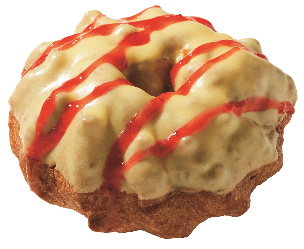 サクサク食感が人気のオールドファッション生地に、レアチーズホイップをのせ、チーズ風味のチョコでコーティング。