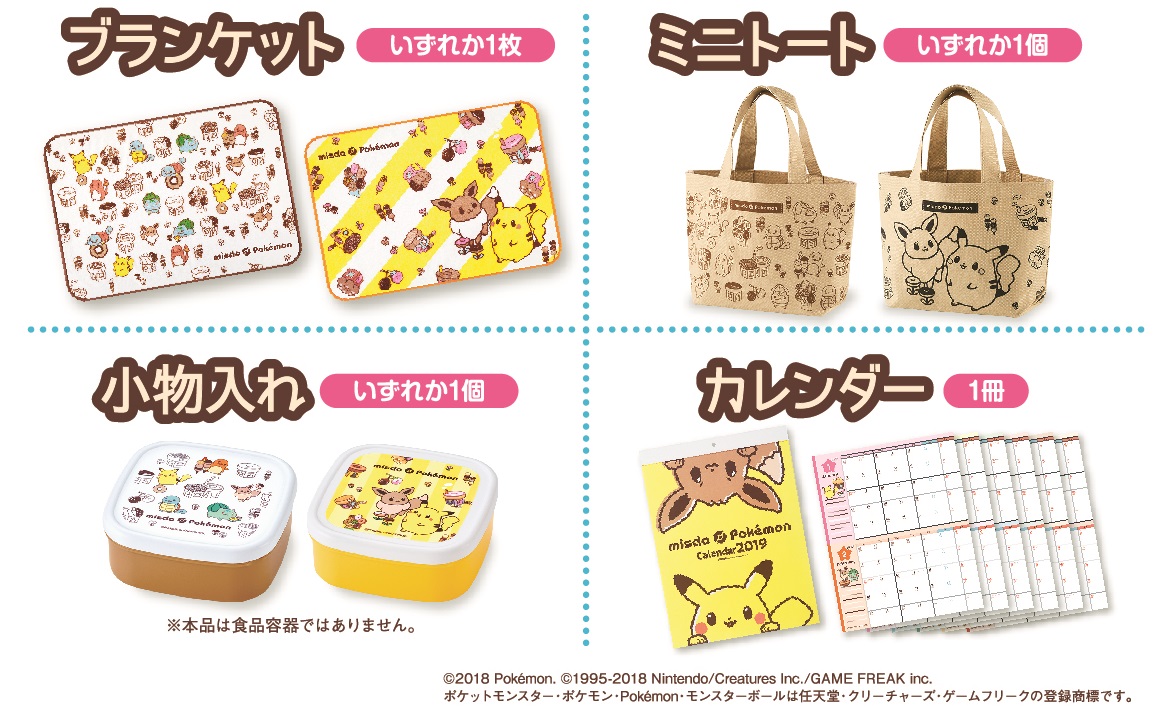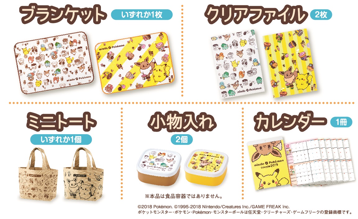 今回発売される「ミスド福袋2019」は「misdo Pokémon ウィンターコレクション」に続き、ドーナツの“ふんわり感”や”もっちり感”をイメージした「ポケモン」やドーナツをデザインしたグッズ付き。