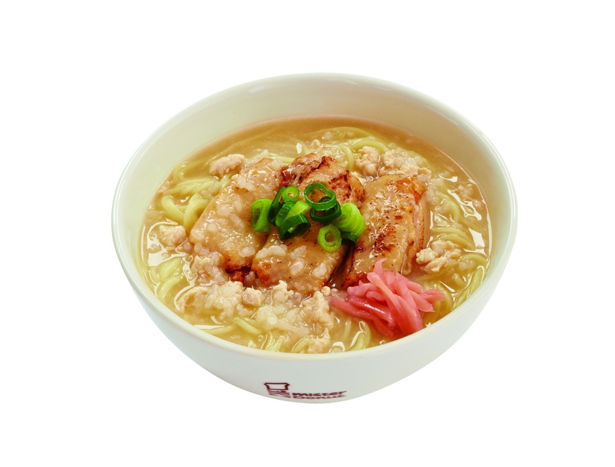 生姜が香る濃厚なスープに、鶏肉、酢漬け生姜、ネギをトッピング。