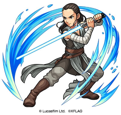 「レイ(画像は水属性 ★6 ジェダイ・トレーニング レイ)」、「フィン」などの最新キャラクターまで、多数の人気キャラクターがモンスト内に登場します。