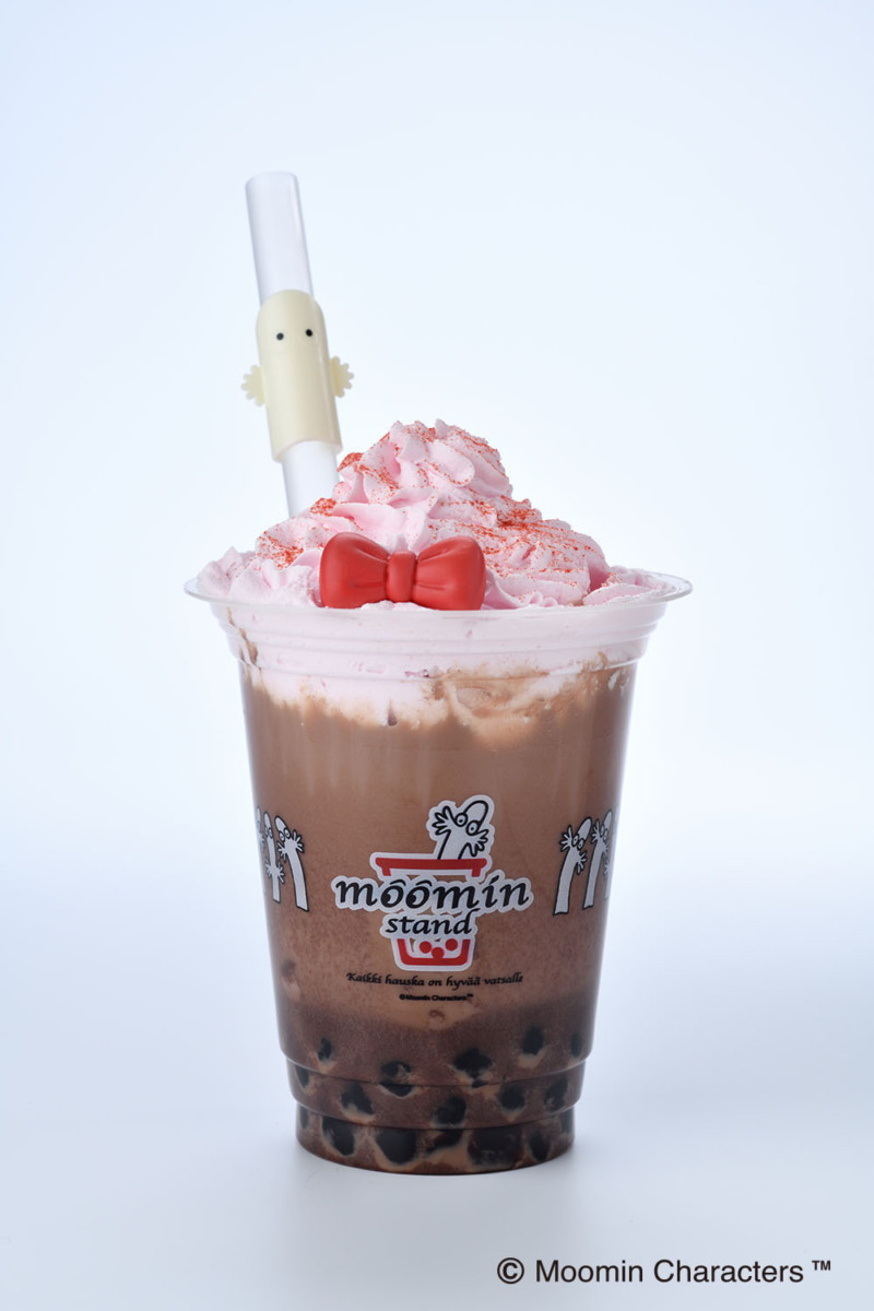 会場限定メニュー「リボンチョコレートストロベリークリーム」や、出張ムーミンスタンドだけの4種類(チョコレート味、抹茶味、紅茶味、グレープ味)の「ニョロニョロのたね」入りドリンクが味わえます。