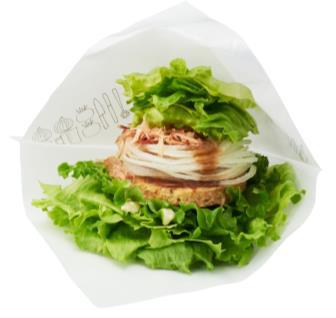 「たまねぎバーガー」のバンズ部分をレタスに変え、お肉のパティの代わりに大豆由来の植物性たんぱくを使用した“ソイパティ”にして仕上げたサラダ感覚のバーガーです。