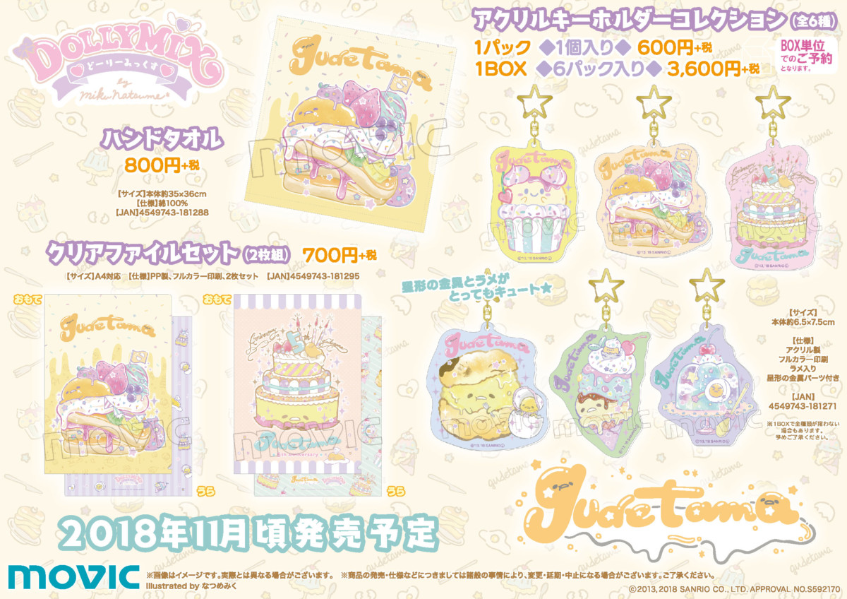 ムービックの「DOLLY MIX × ぐでたま」コラボレーショングッズは2018年11月発売予定です☆