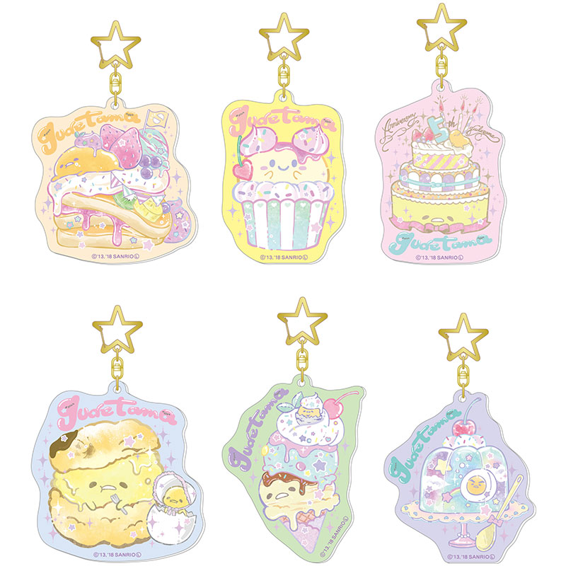 スイーツをモチーフにデザインされた「ぐでたま」デザインのアクリルキーホルダー全6種。