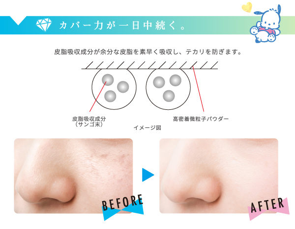皮脂吸収成分がテカリを防ぎ、一日続くカバー力。