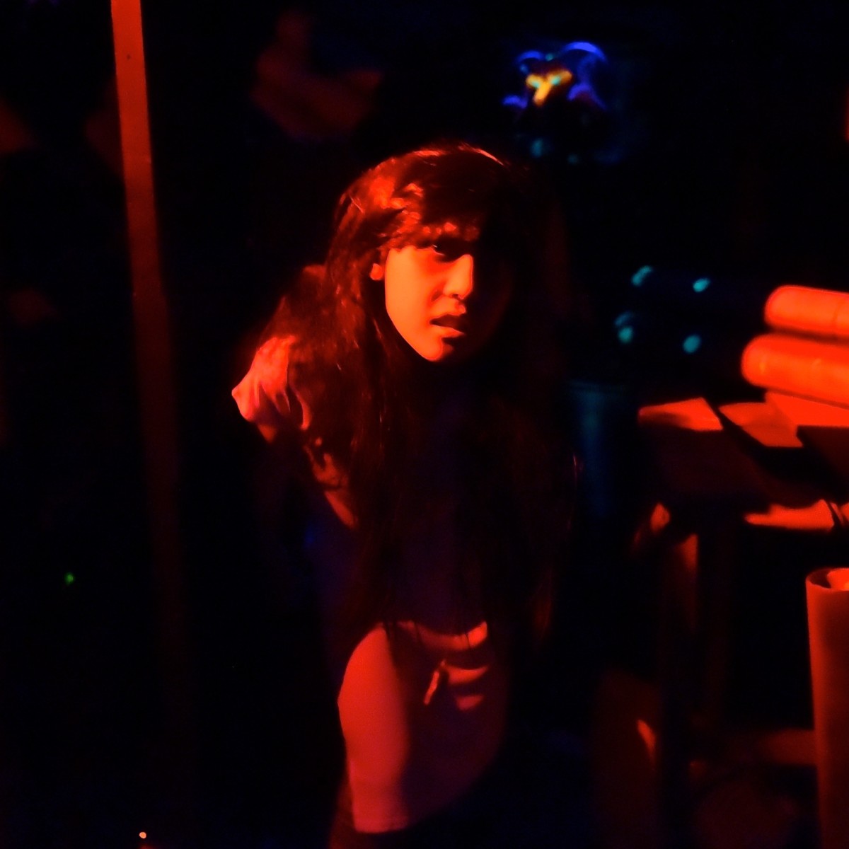 小部屋の奥からゆっくりと手招きしている「口裂け女」