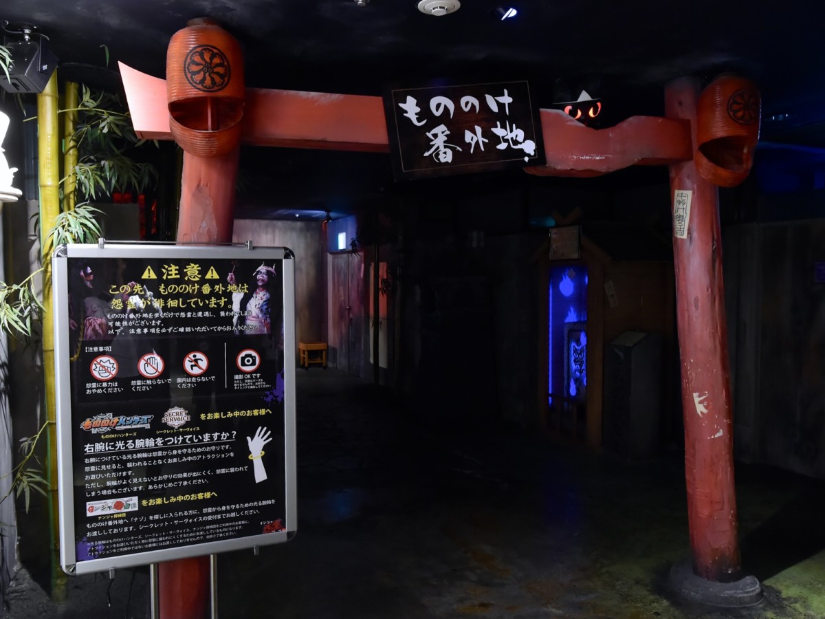 夜18時を迎えると、園内エリアの一つ「もののけ番外地」に潜む怨霊たちは通りがかりの人々に襲いかかり、3つの既存アトラクションが身もすくむ恐怖アトラクションへと変貌します。