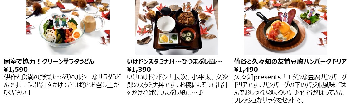 乱太郎のチーム「ヘルシー茶屋」からは、六年生の同室コンビ、善法寺伊作先輩、食満留三郎先輩の野菜たっぷりサラダうどんが登場!