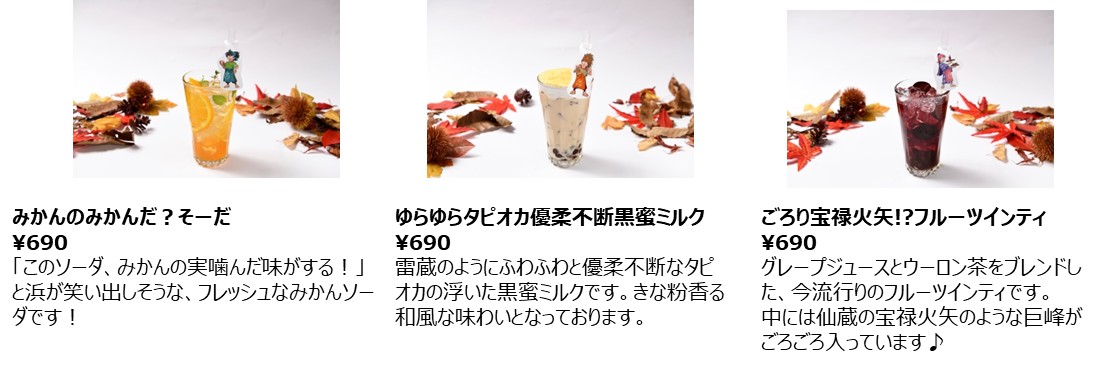 茶屋ごとにテイストの異なる衣装に身を包んだ限定アートや、個性豊かなメニューなど、忍たまファンは必見です。
