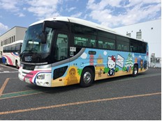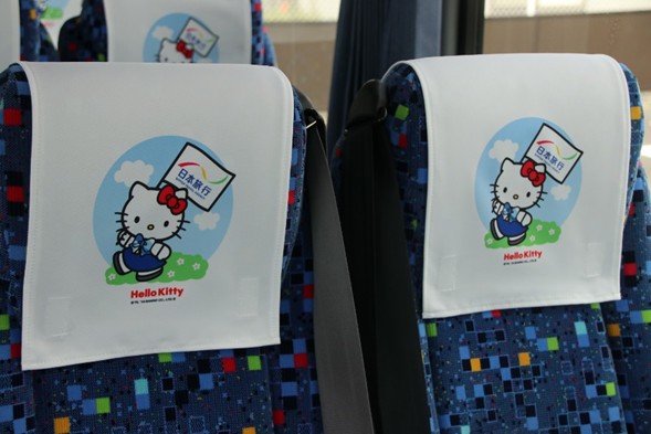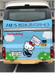 西日本ジェイアールバスサービスが保有するバス(貸切観光バス)のうち1台が、日本旅行の旗を持ったハローキティラッピングバスに変身!