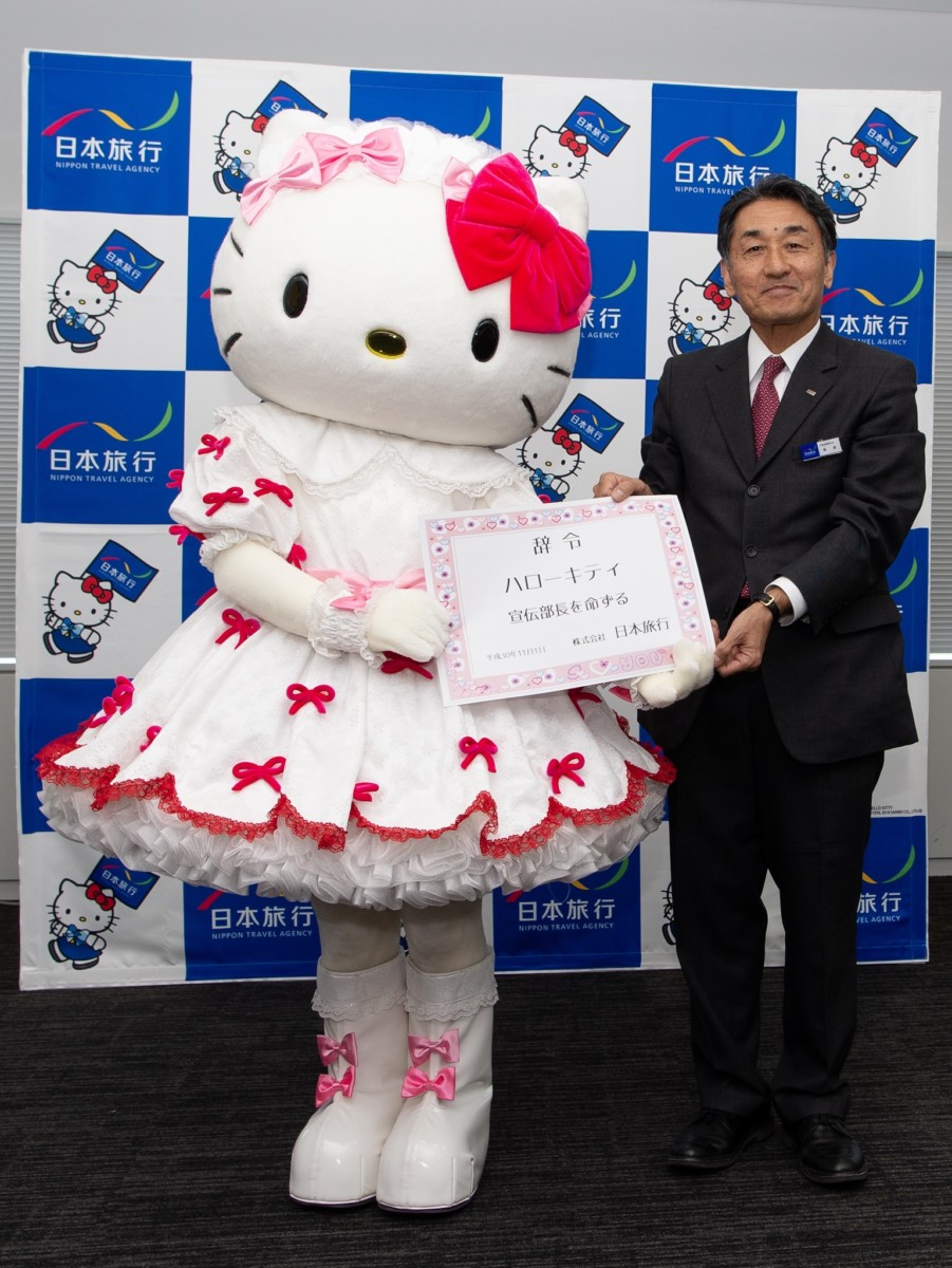 日本旅行の創業日、そしてハローキティの誕生日でもある2018年11月1日付で「宣伝部長」に任命されたハローキティ。