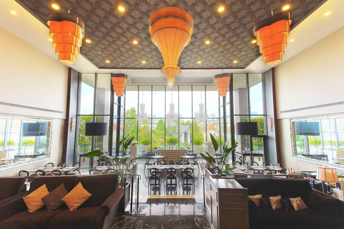ホテルのラウンジを彷彿させる贅沢な調度品に囲まれたエレガントな空間で、四季折々に表情を変える庭園を眺めながら、優雅なデザートタイムを楽しめます。