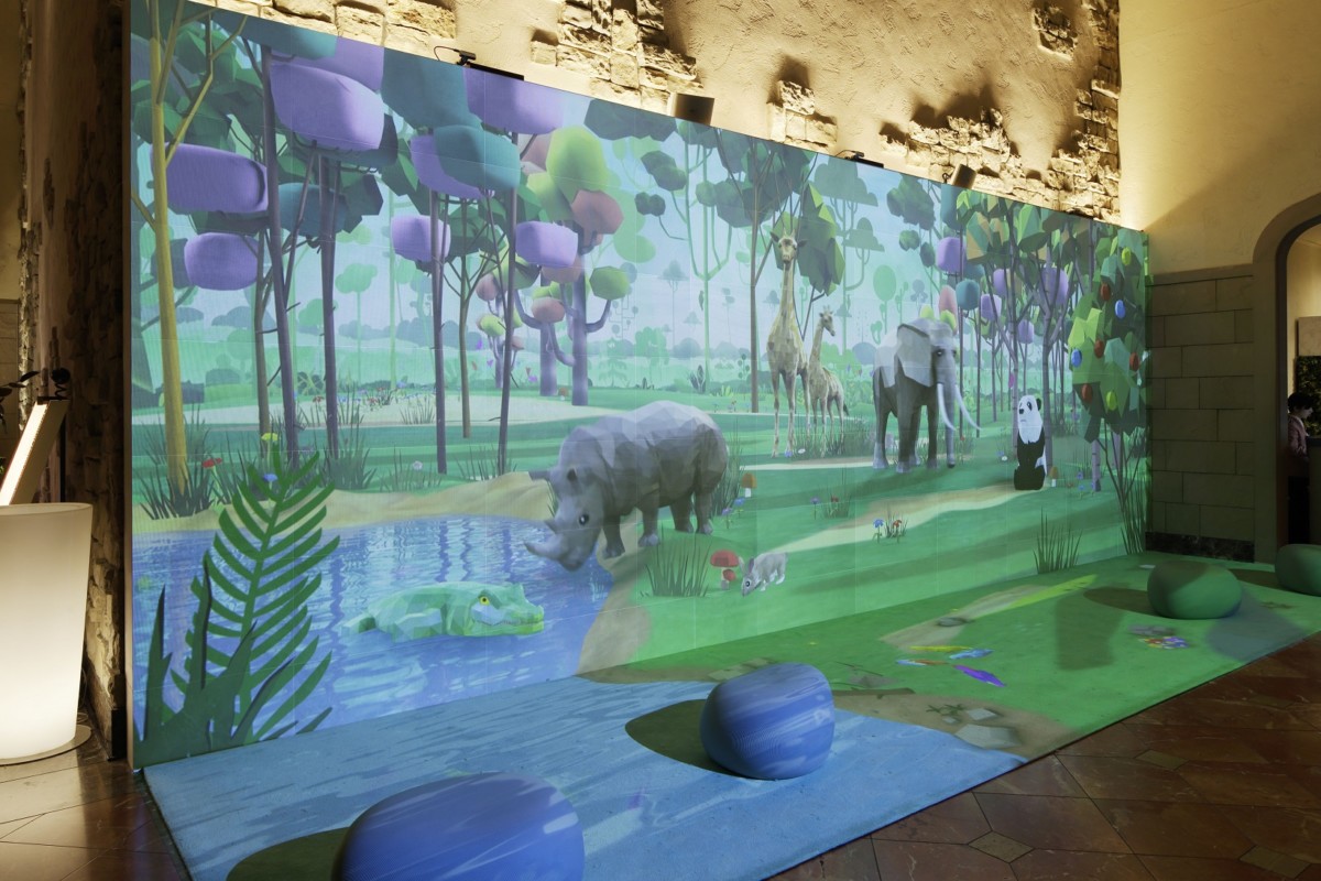 壁面や床面に映された森や草花に触れると楽しい反応があるなど、子供心に戻れる楽しいスポットです。