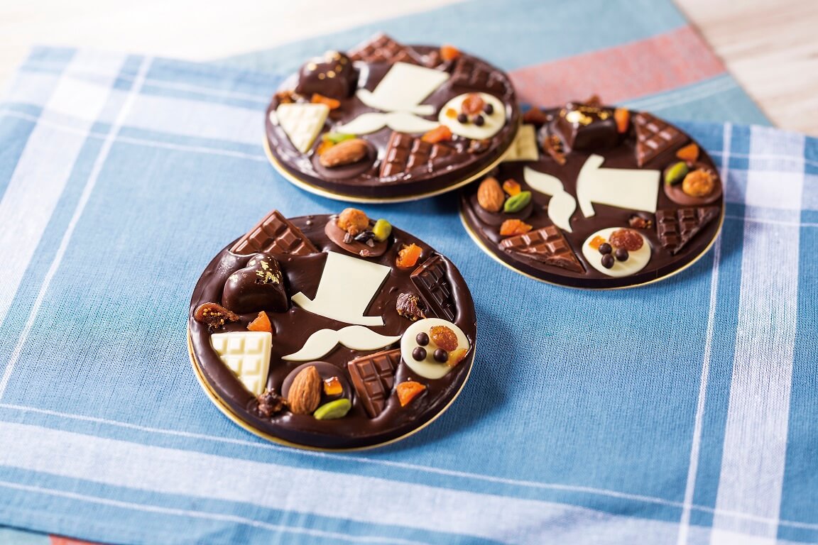 カカオ62%のチョコレートをベースとし、ホワイト、ミルクの3種のチョコレートに、ナッツやドライフルーツをトッピングした、多彩な味わいのタブレットです。
