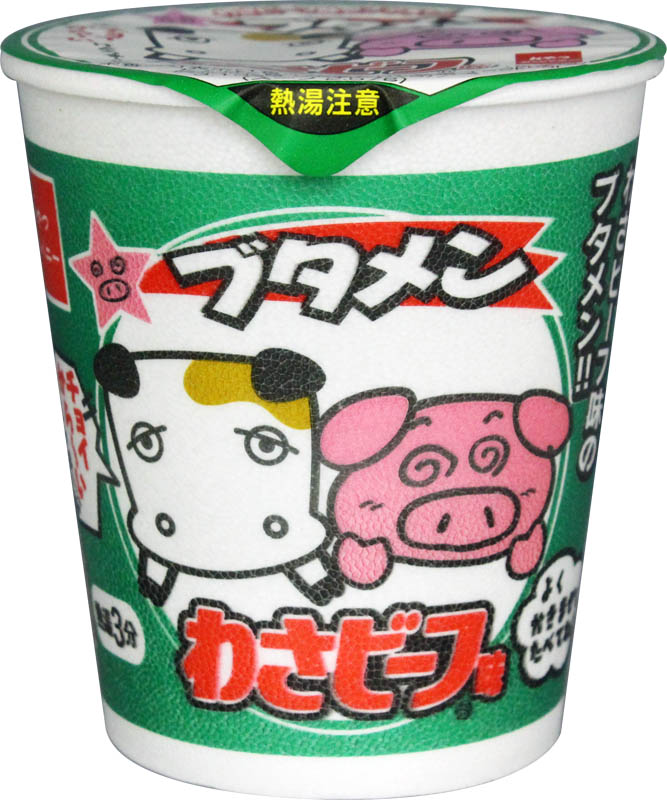 今年で25周年を迎える「ちょうどいい」サイズのミニカップラーメン「ブタメン」にわさびの辛味がきいた濃厚ビーフの味わいを再現した「ブタメン(わさビーフ味)」が登場!