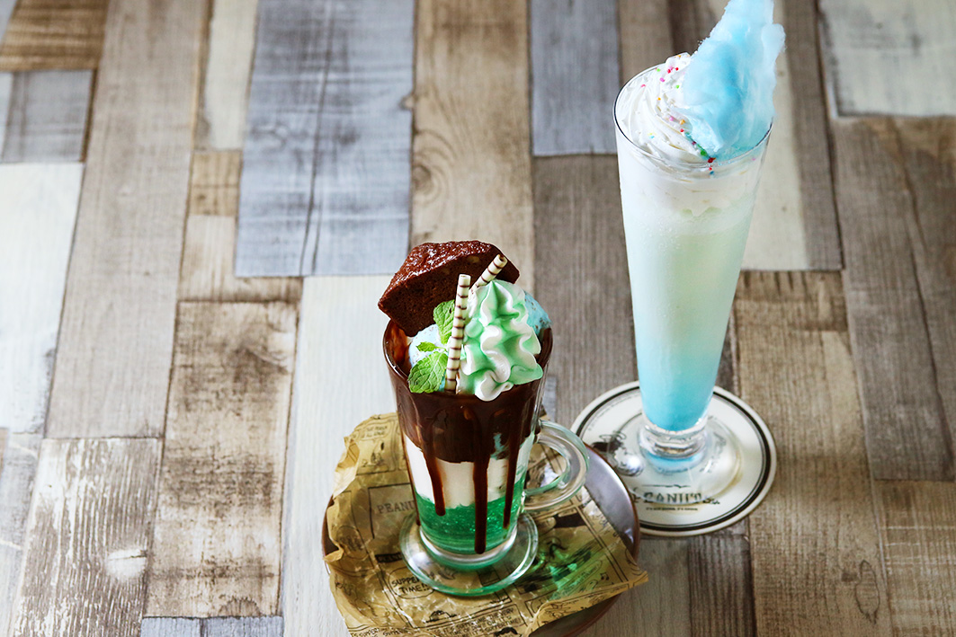 ライナスの"安心毛布"をイメージした、パステルブルーのチョコミントサンデー。