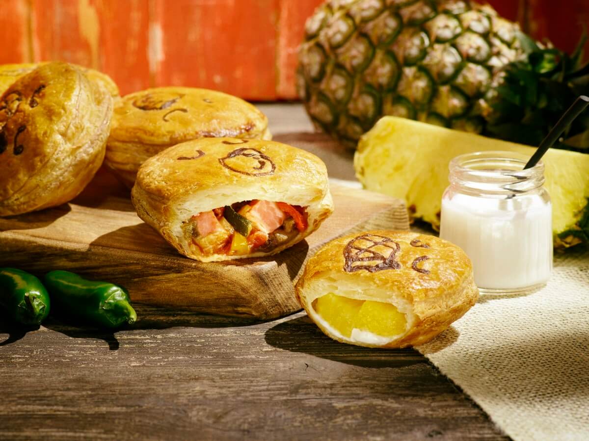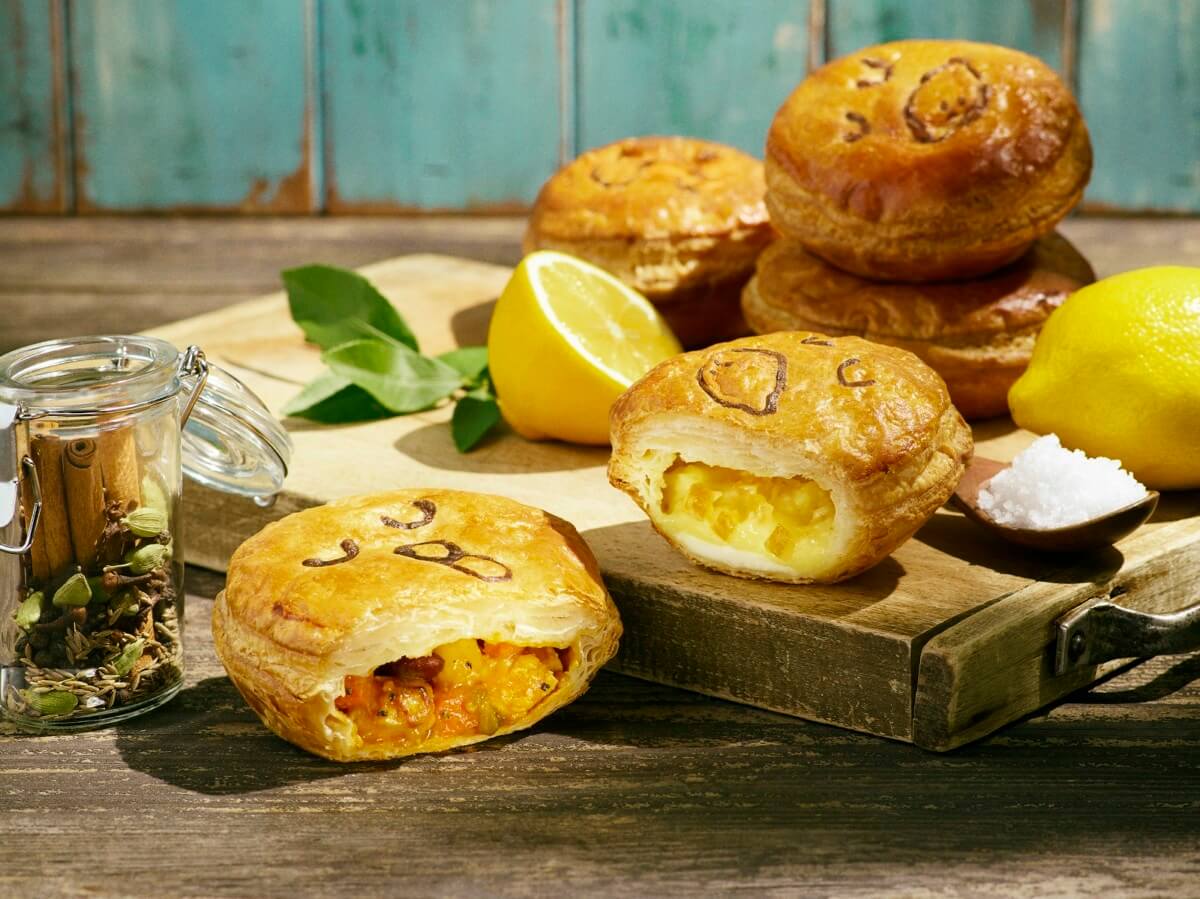 2018年6月1日(金)発売のパイはチキンと野菜を煮込み、ふんわりとスパイスの香りをまとわせた「バターチキンカレー」、そしてレモンの香りとコクのあるチーズクリームにほんの少しの塩味がポイントの「ソルティレモン」の2種類です。