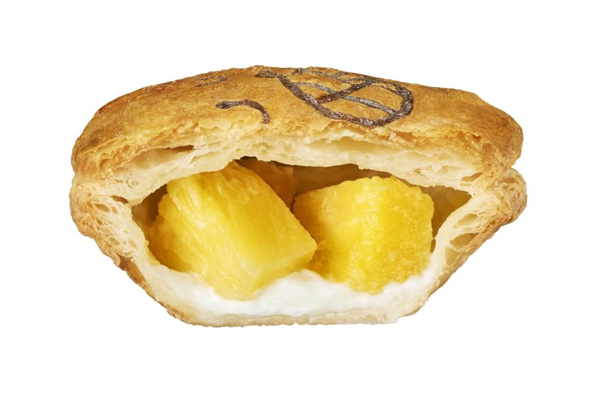 ごろごろ大きめにカットしたゴールデンパインのフルーティな香りと、なめらかなヨーグルトクリームの酸味がマッチした、爽やかなスイーツパイです。