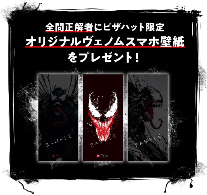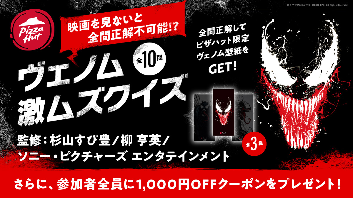 出題される全10問の問題を全問正解することでピザハット限定「ヴェノム壁紙」がプレゼントされる「ヴェノム激ムズクイズ」キャンペーンも実施。