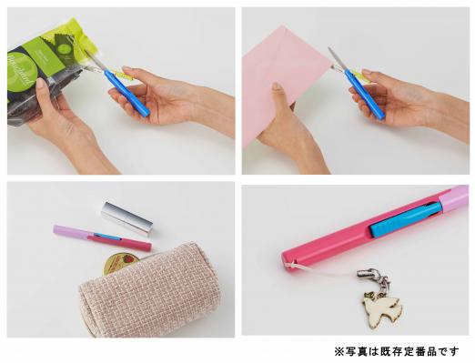 ステーショナリーメーカーのプラスの、常に最適な刃の開き角度を保つ “ベルヌーイカーブ刃”によって切れ味を高めた究極スリムな携帯はさみ「フィットカットカーブ ツイッギー」シリーズ。