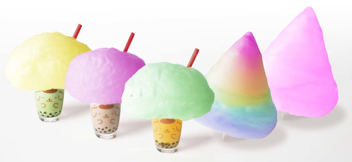 サンリオの大人気キャラクター“ポムポムプリン”をテーマとしたカフェ「ポムポムプリンカフェ」に、カラフルな見た目とふわふわ食感の「コットンキャンディ」と「コットンキャンディタピオカ」が登場!