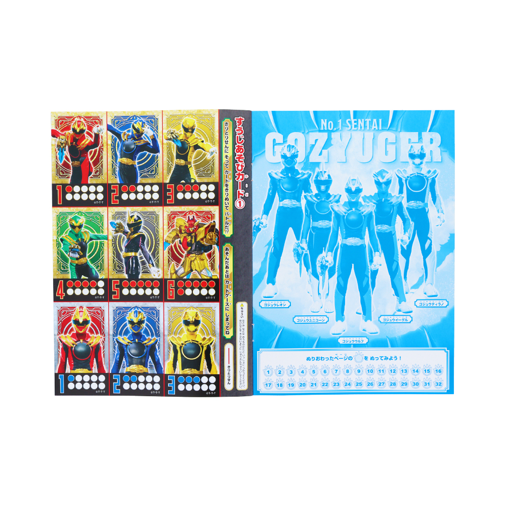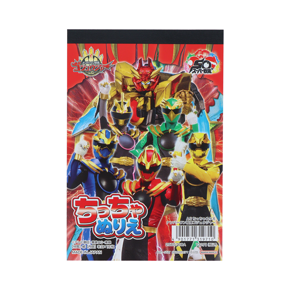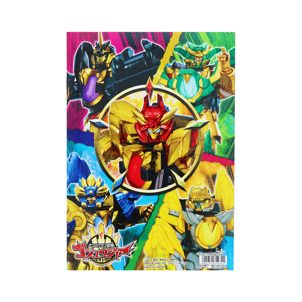 「ゴジュウウルフ」や「ゴジュウレオン」「ゴジュウティラノ」「ゴジュウイーグル」「ゴジュウユニコーン」「テガソード」を表紙にプリントしたB5サイズのぬりえ。