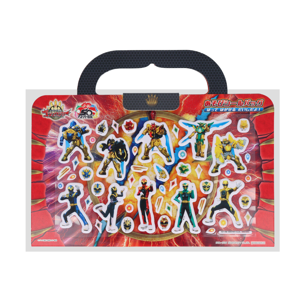 貼ってはがせるシール台紙に、たっぷりのシールがセットになった、『ナンバーワン戦隊ゴジュウジャー』の「あそびシールバッグ」