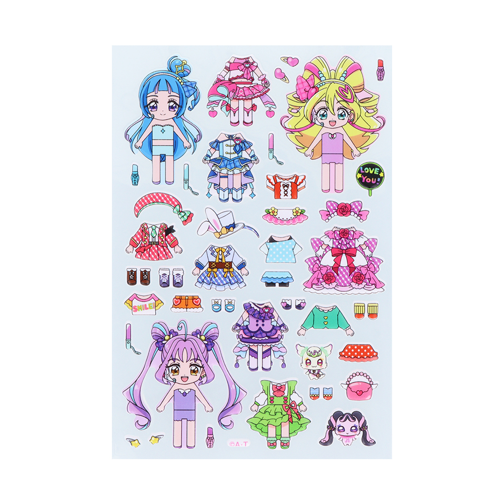 「キュアアイドル」や「キュアウインク」「キュアキュンキュン」「プルリン」「メロロン」たちをプリントしたチャームシールや