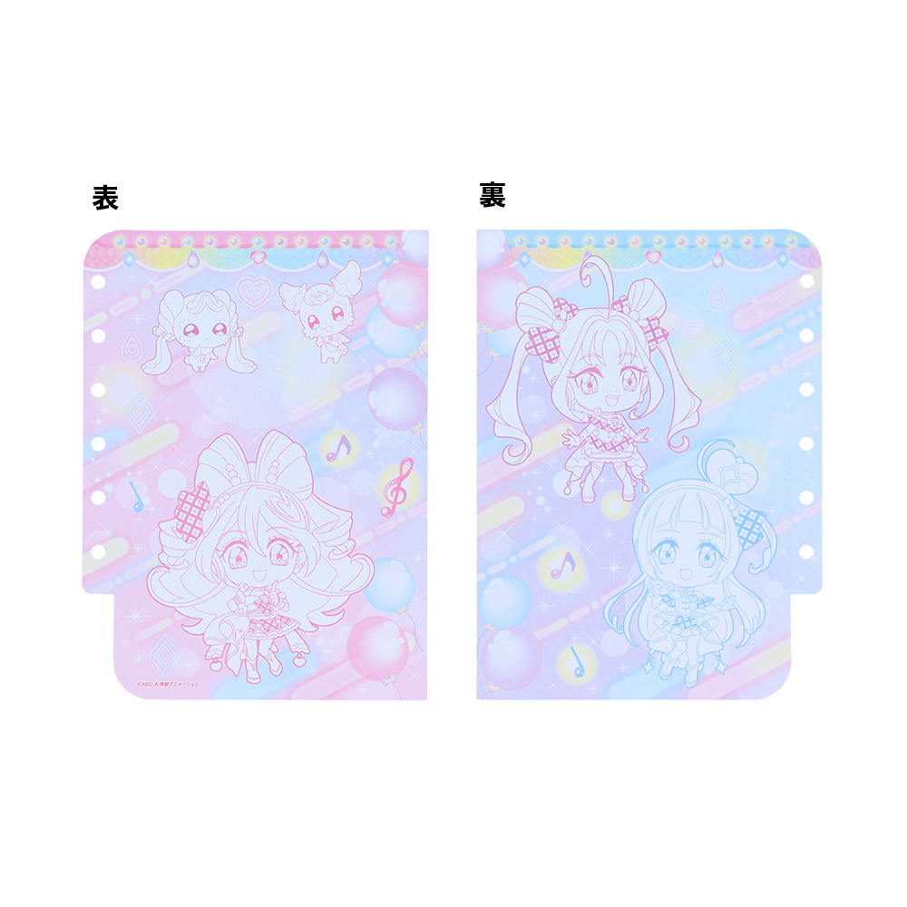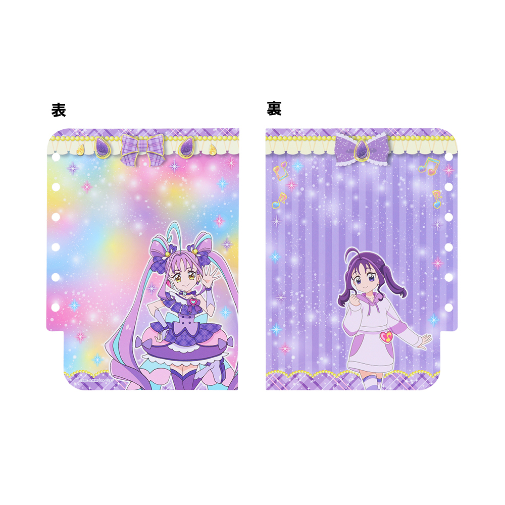 オモテにアイドルプリキュア、ウラ面に「プルリン」と「メロロン」をプリントしたバインダー本体に