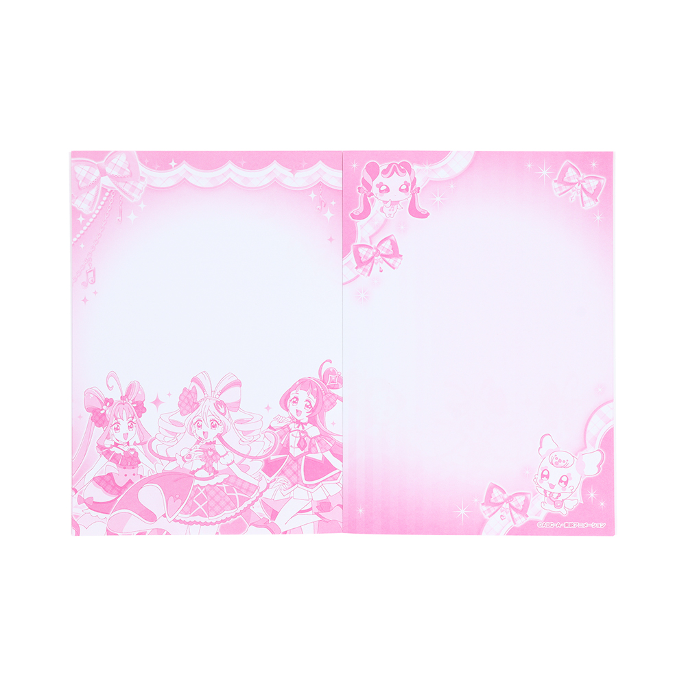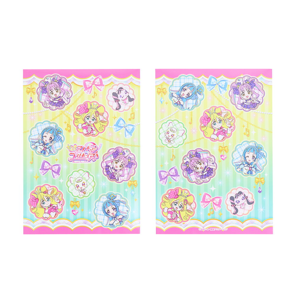 アイドルプリキュアや「プルリン」「メロロン」たちのかわいいイラストを使った、かわいいステーショナリー。
