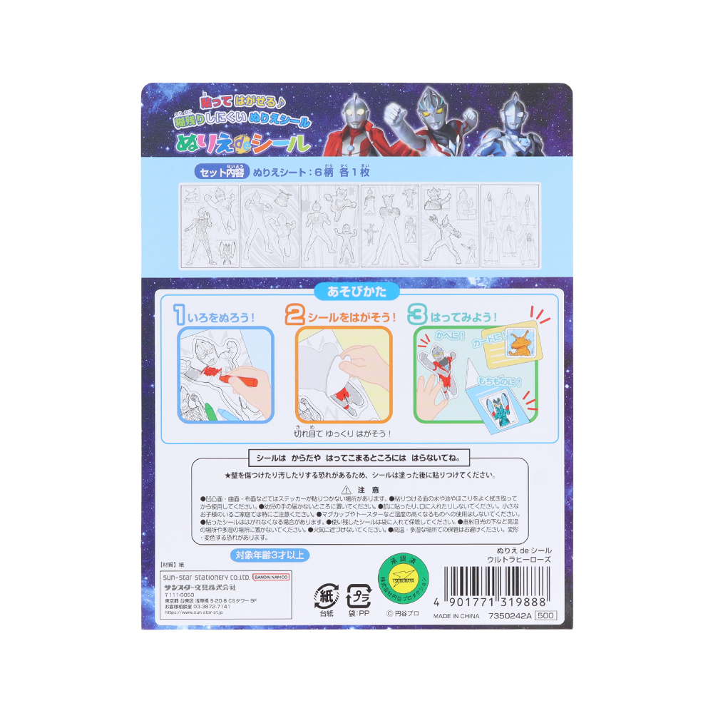 サンスター文具「ぬりえdeシール」ウルトラヒーローズ