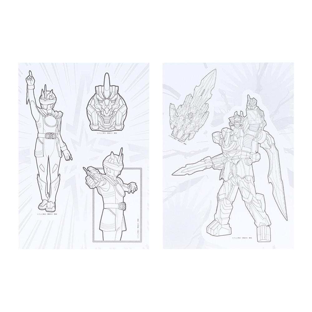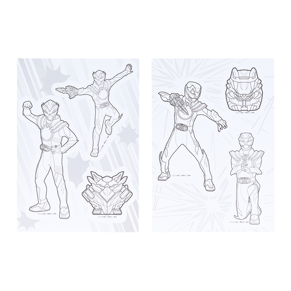 「ゴジュウウルフ」をはじめとするゴジュウジャーや「テガソード」に色を塗って、シールとして使えるグッズ。