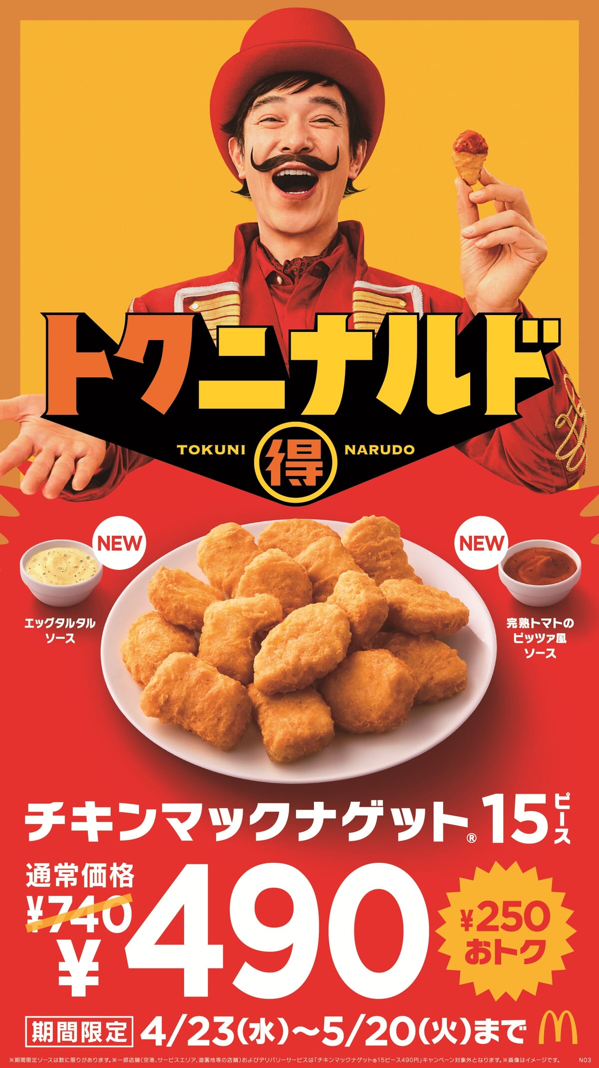 「チキンマックナゲット15ピース」が特別価格490円で味わえる「トクニナルド」キャンペーン。