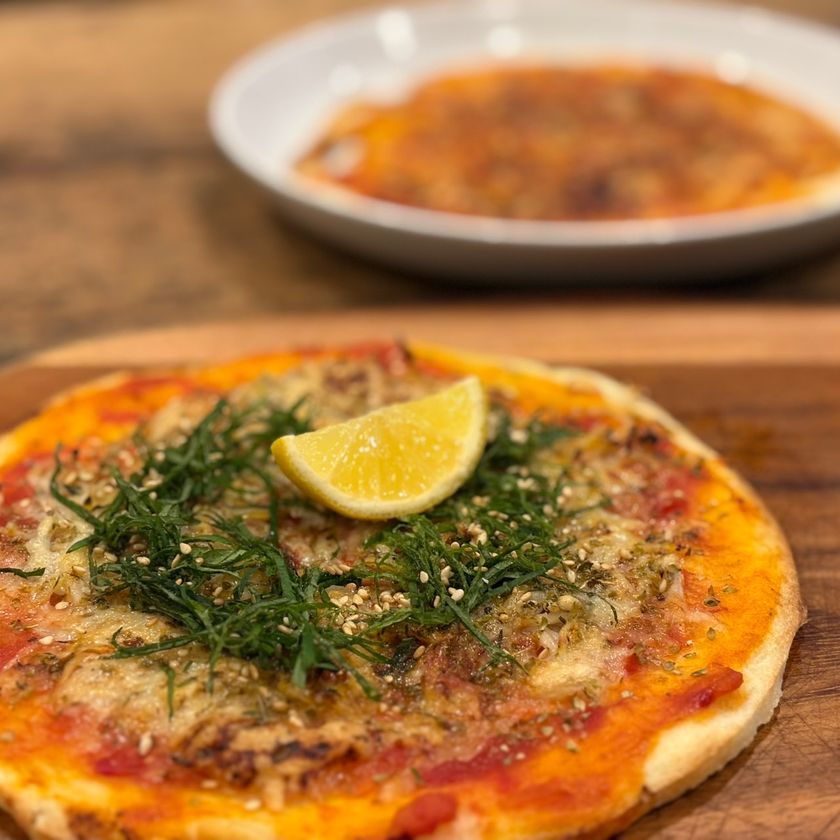 自家製トマトソースとチーズのトルティーヤピザ/静岡焼津の釜揚げしらすのチチニエリ/岩城島レモンと蜂蜜ゴルゴンゾーラのピザ/(辛)自家製ミートとハラペーニョのオリエンタルピザ/ハーブと生ハムのピザ など