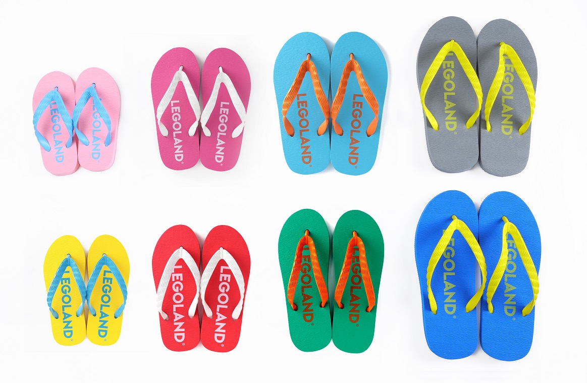 びしょ濡れエリアで必須となるビーチサンダルとフェイスタオルも、レゴランド(R)・ジャパン限定グッズに登場。