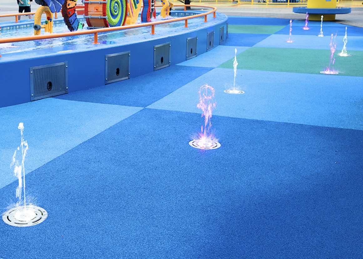 レゴ(R) ブロックをイメージしたすべり台やシャワーなど、水しぶきたっぷりの楽しい仕掛けがいっぱいあります。