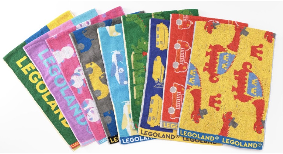 また、びしょ濡れエリアで必須となるビーチサンダルやフェイスタオルも、レゴランド(R)・ジャパン限定グッズとして登場です!
