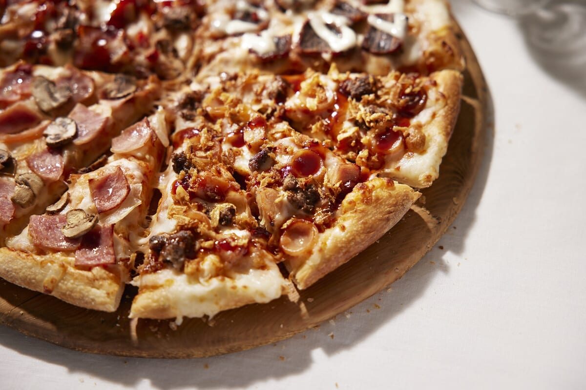 ドミノ・ピザ特製のスモーキーなBBQソースが、お肉の旨味を引き立てるおいしさ。