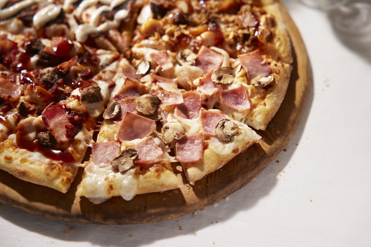 ハムのスモーキーで少し塩辛い風味が、新鮮なマッシュルームと完璧にマッチし、モッツァレラと生地ですべてをまとめている。