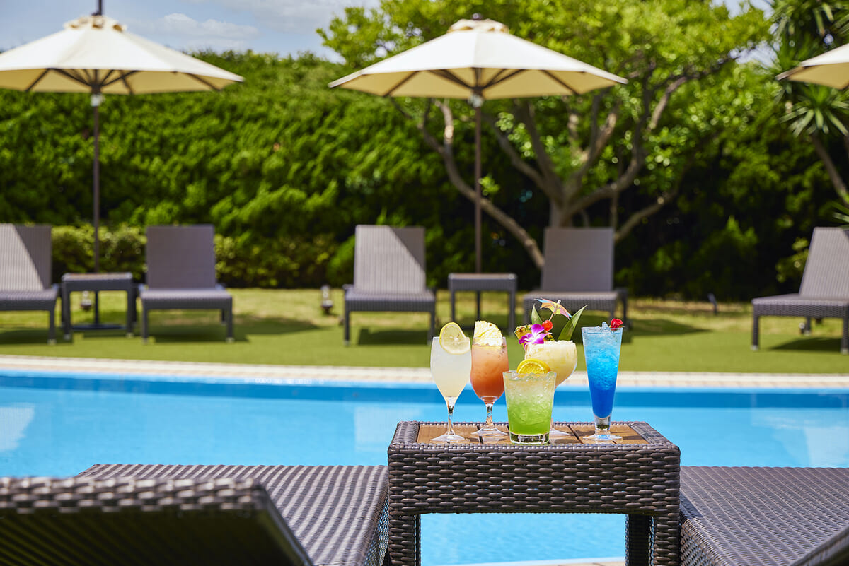 心地よい風を感じながら、プールサイドで優雅なひとときが過ごせます。