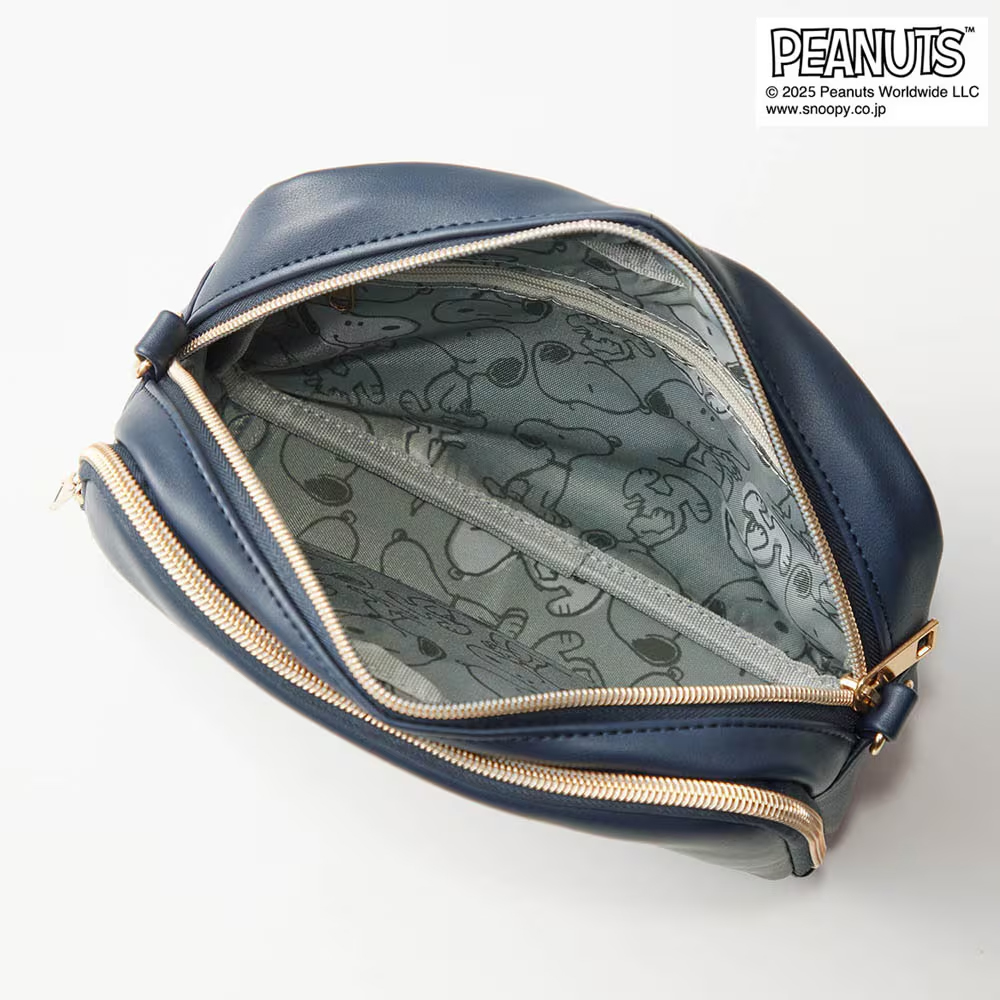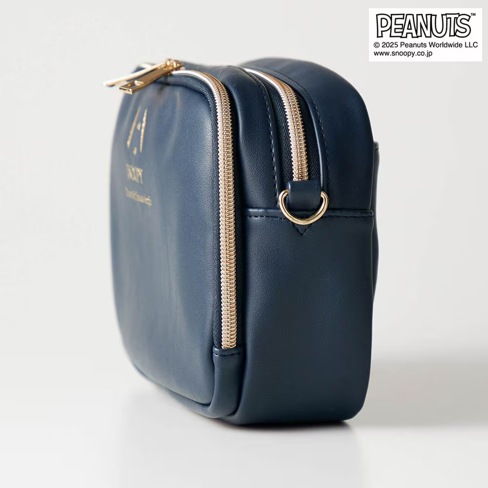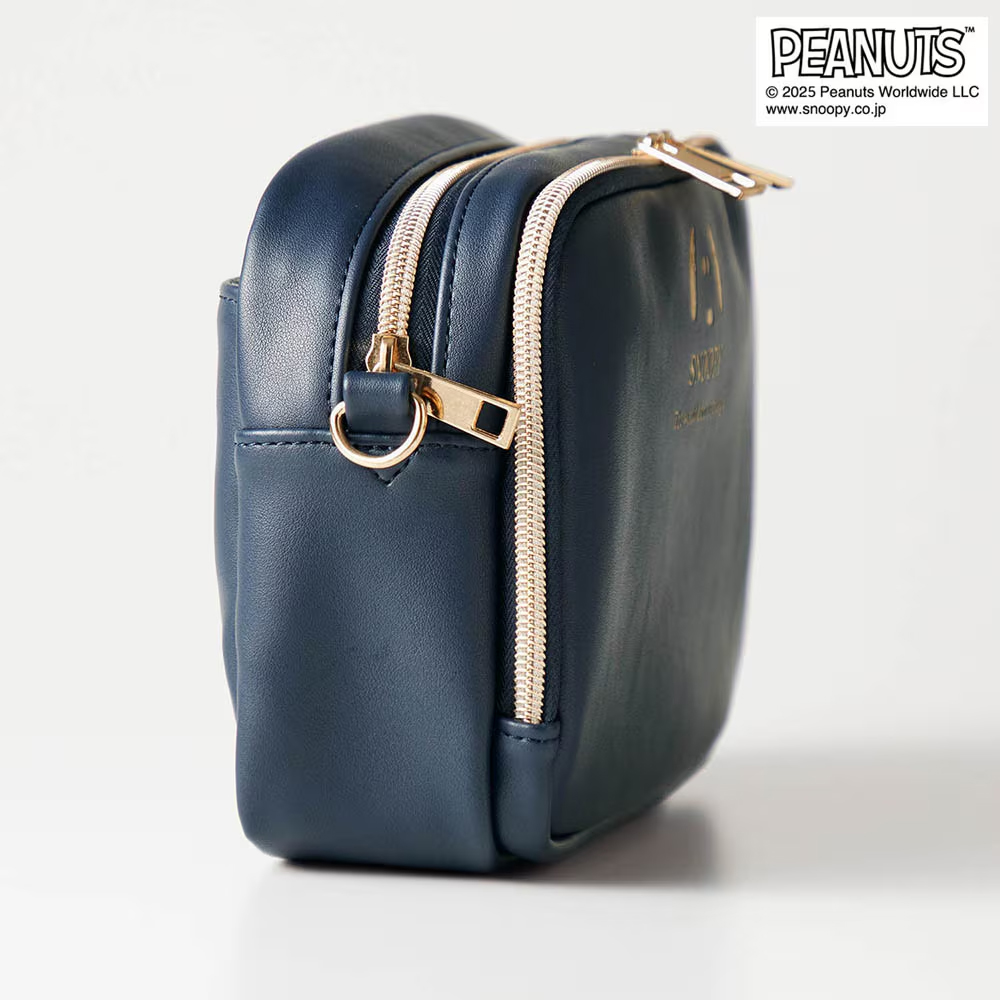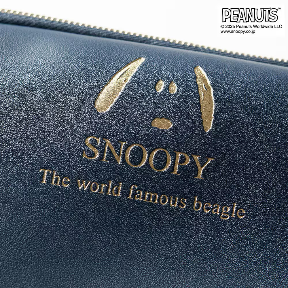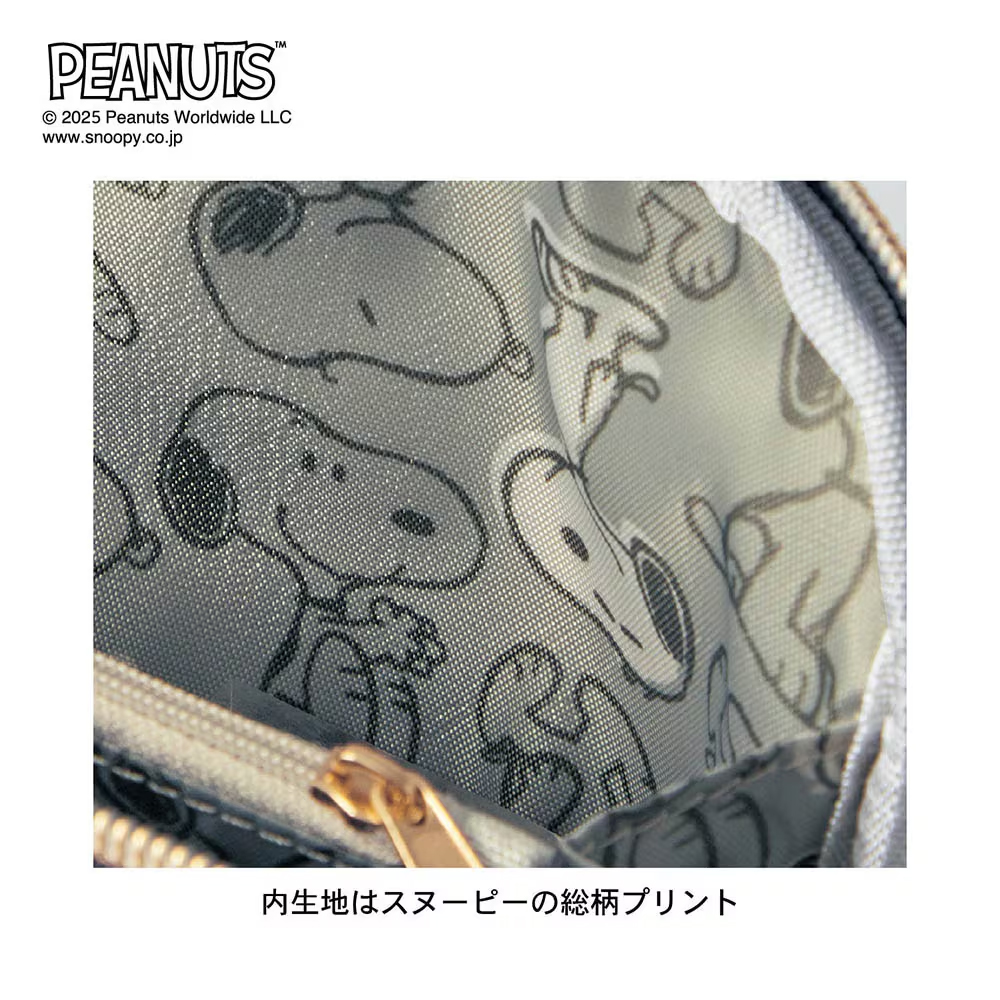 「スヌーピー」の箔押しプリントがかわいくて高級感のある、便利でシンプルなデザインのポシェット!