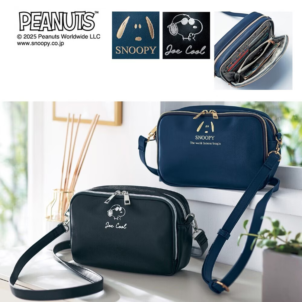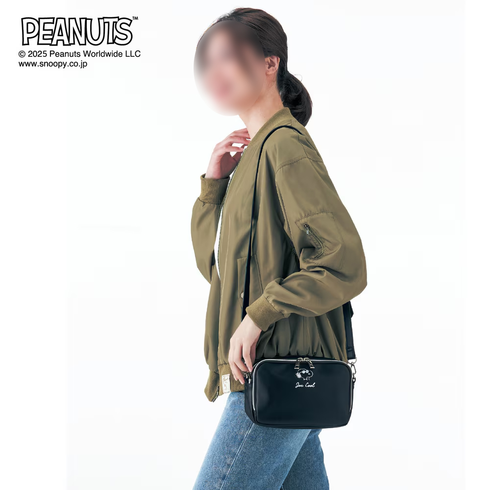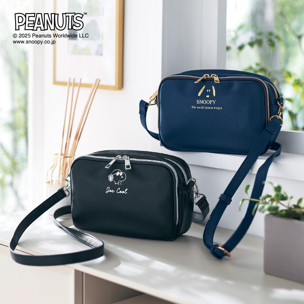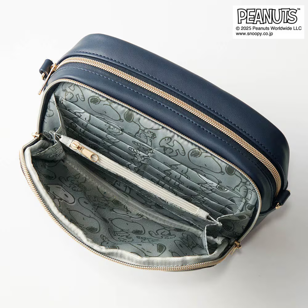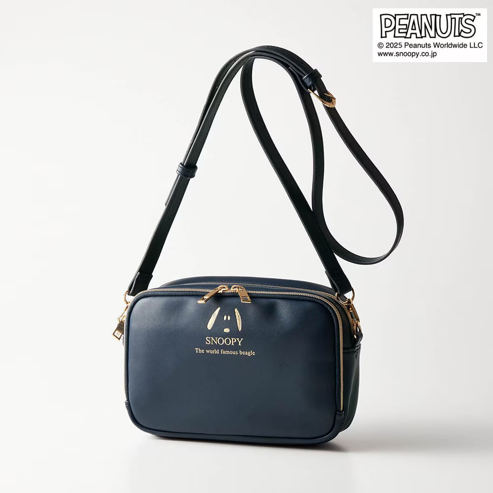 「スヌーピー」の箔押しプリントがかわいくて高級感のある、便利でシンプルなデザインのポシェット!