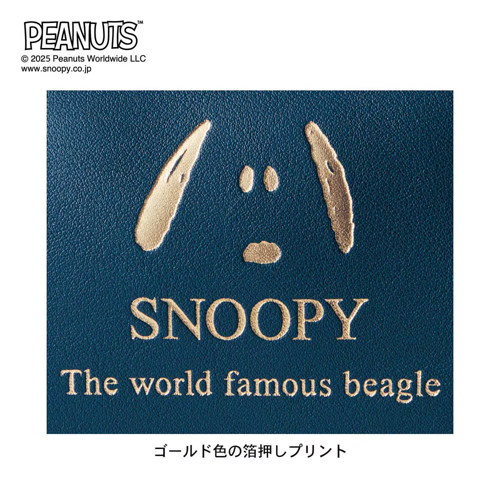 ゴールドの箔押しで「スヌーピー」がプリントされています。