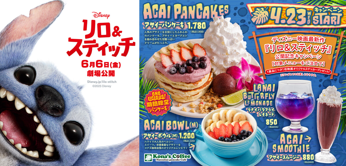 コナズ珈琲にて、ディズニー映画最新作『リロ&スティッチ』が2025年6月6日より劇場公開することを記念したキャンペーンが期間限定で実施されています☆